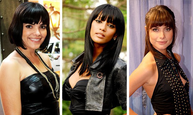 Inspirada na moda dos anos 1970, a franja do momento é cheia e termina na altura das sobrancelhas