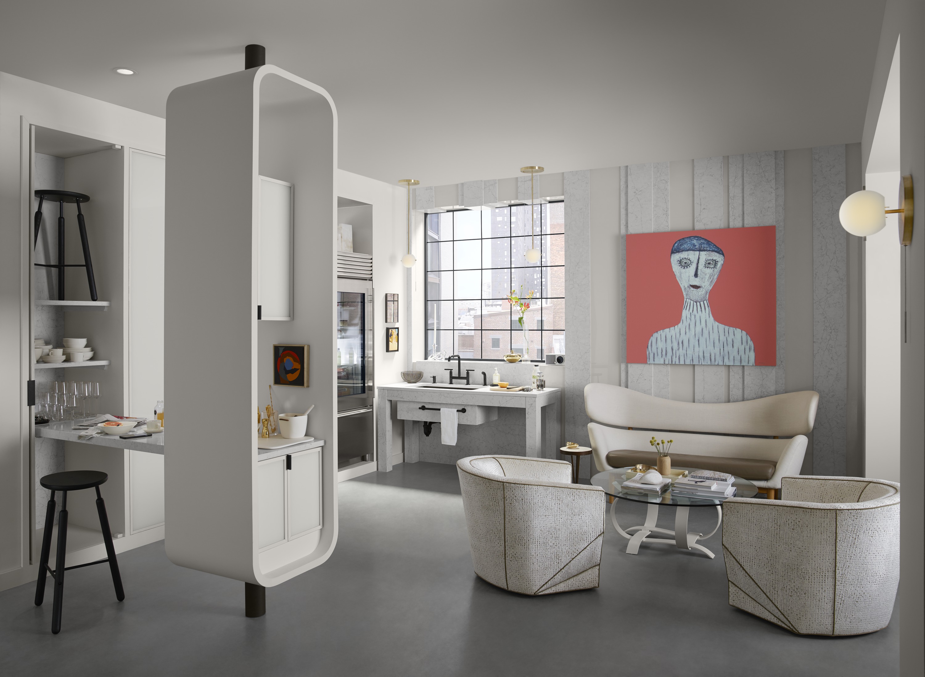 Ao desenhar esta cozinha conceito num espaço de 25 m², o designer norteamericano Drew Mcgukin, em parceria com as marcas Cosentino, Kohler e Benjamin Moore, se inspirou nas necessidades da vida urbana multifacetada.