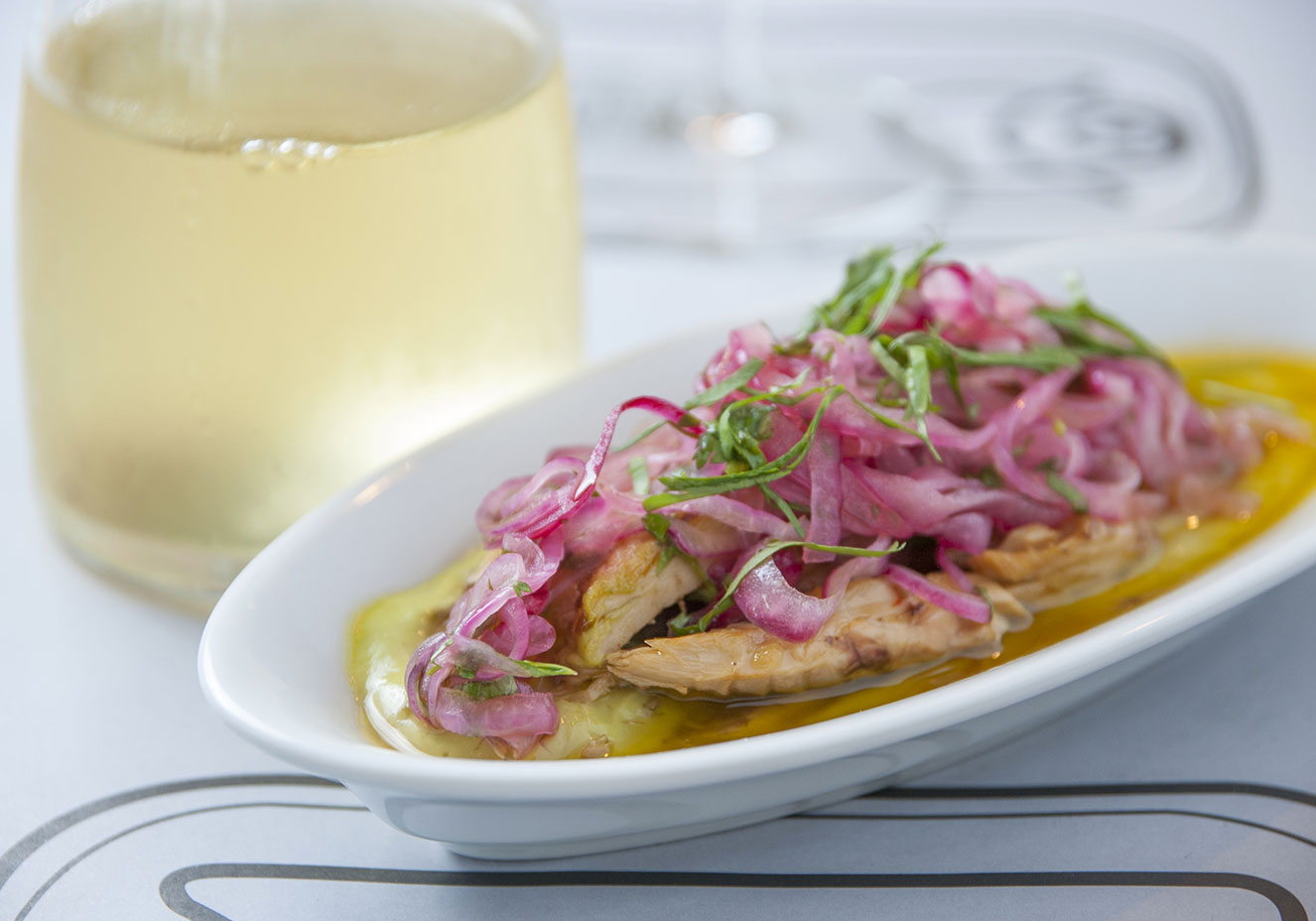 Cavala ligeiramente picante com abacate e coentro