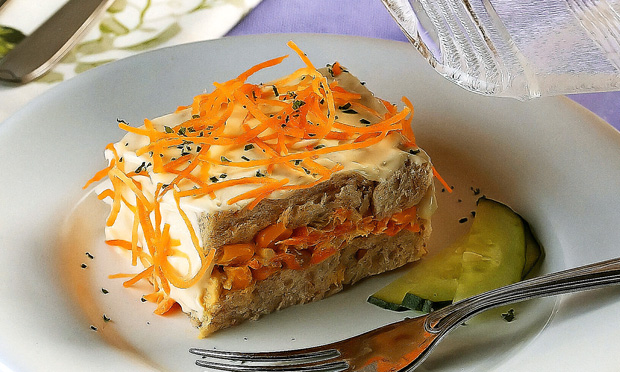 Cubra com o restante da maionese e decore a gosto.
