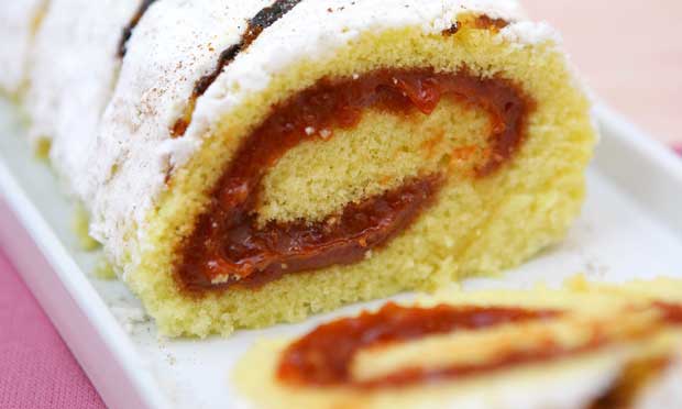 Despeje a massa na assadeira reservada e asse em forno médio preaquecido até dourar. Retire do forno e, com o auxílio do papel-manteiga, desenforme o bolo. Espalhe a geléia de goiaba sobre a superfície da massa. Enrole o rocambole com o auxílio do papel-manteiga. Polvilhe com o açúcar de confeiteiro antes de servir.