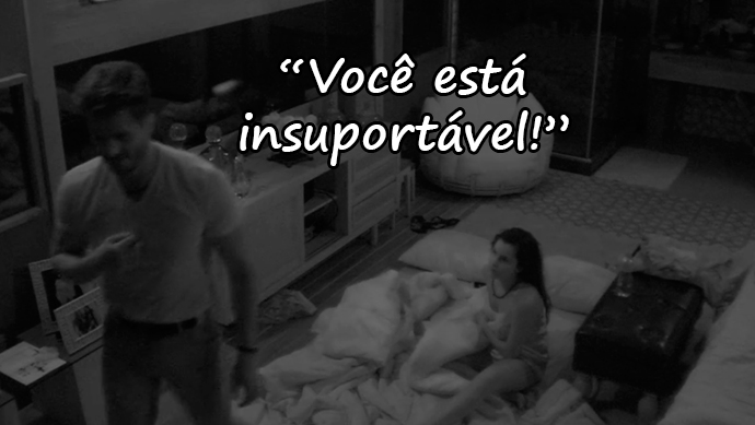 Percebendo que Marcos estava realmente chateado e prestes a sair do quarto do Líder, a rainha da autoestima bolou um plano quase-infalível: alegou uma dor na barriga para ter uma desculpa para se aproximar do Doc. Ele ficou boladíssimo com a desculpinha e ameaçou sair do quarto, não sem antes soltar uma maravilhosa frase de efeito: “Ou você amadurece ou vai ter uma hora que o brilho vai passar”.