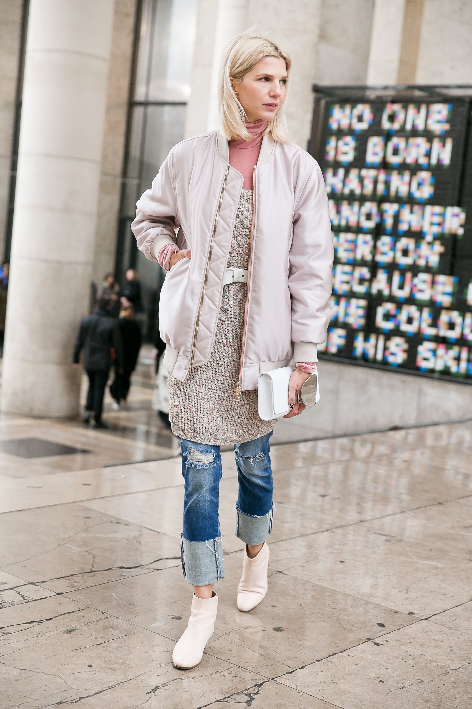 A jaqueta bomber, outra aposta da temporada, também pode ser oversized e muito chique! Invista!
