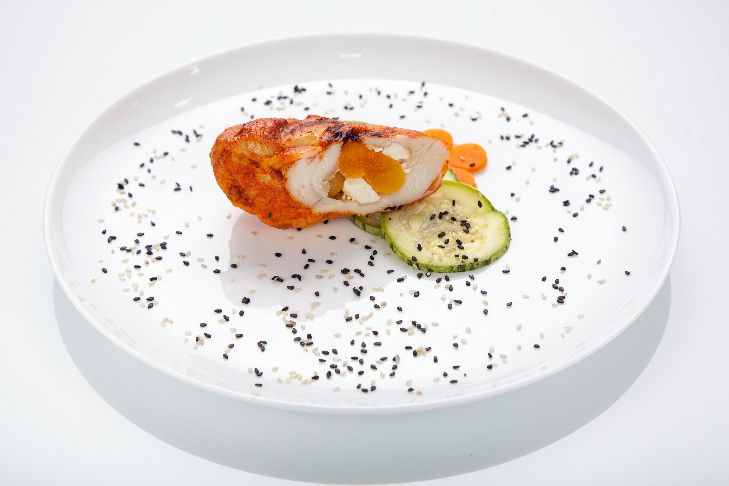 - Depois de temperado, faça um corte no meio e recheie com a ricota e o damasco