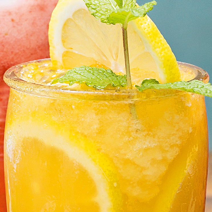 - Sirva com as rodelas de laranja, a polpa de maracujá e as folhas de hortelã
