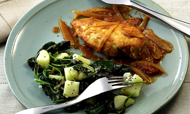 Junte o gengibre e o curry e cozinhe, mexendo sempre, por 2 minutos.