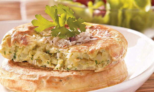 Usando uma espátula, vire a fritada, para que doure dos dois lados. Sirva.