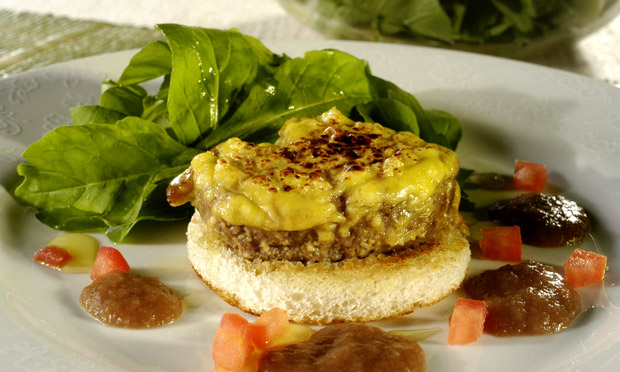 - Misture o queijo com as gemas e espalhe sobre os bifes