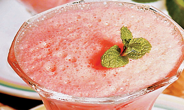 - Despeje-a no liquidificador com o morango picado e o iogurte