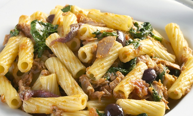 - Retire do fogo, junte a massa cozida al dente e a rúcula