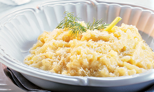 - Lave bem a erva-doce, reserve a parte verde e corte a branca em fatias finas