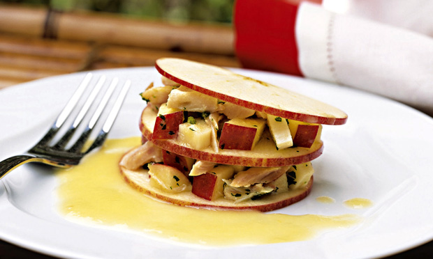 Bata no liquidificador a maçã, a cebola, o alho amassado e o vinagre até a mistura ficar homogênea.