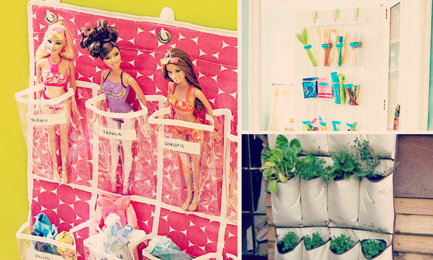 Nunca sabe onde vão parar os clipes, grampos e tudo mais? Pois é… A sapateira também ajuda a organizar seus materiais de escritório. Daqui