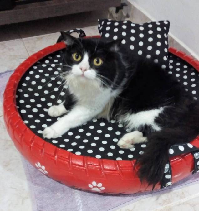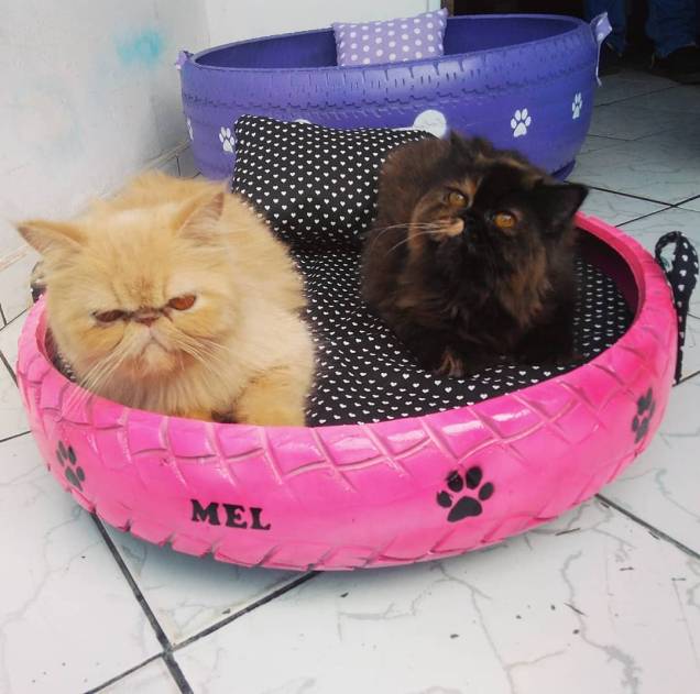 Artista recolhe pneus descartados e cria lindas camas para animais