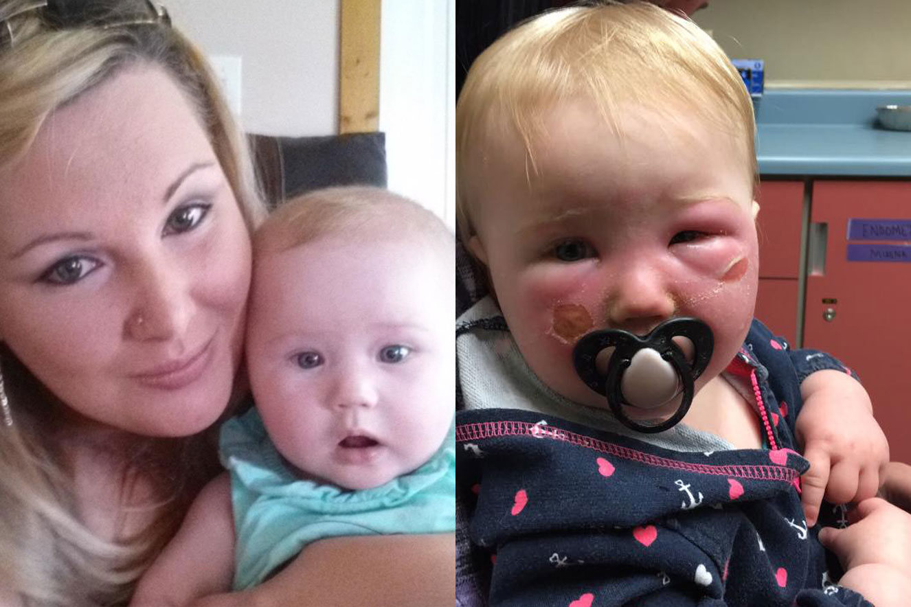 Porém, em pouco tempo, a mãe percebeu que algo estranho estava acontecendo com sua filha uma vez que seu rosto começou a se avermelhar. “Conforme o dia foi passando, ela ficou cada vez mais vermelha. Na manhã seguinte, ela acordou inchada, mais vermelha ainda e com bolhas“, relatou à CBC News.