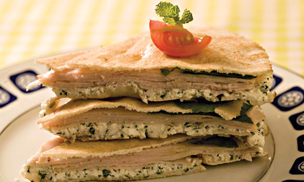 Sanduíche de ricota com peito de peru